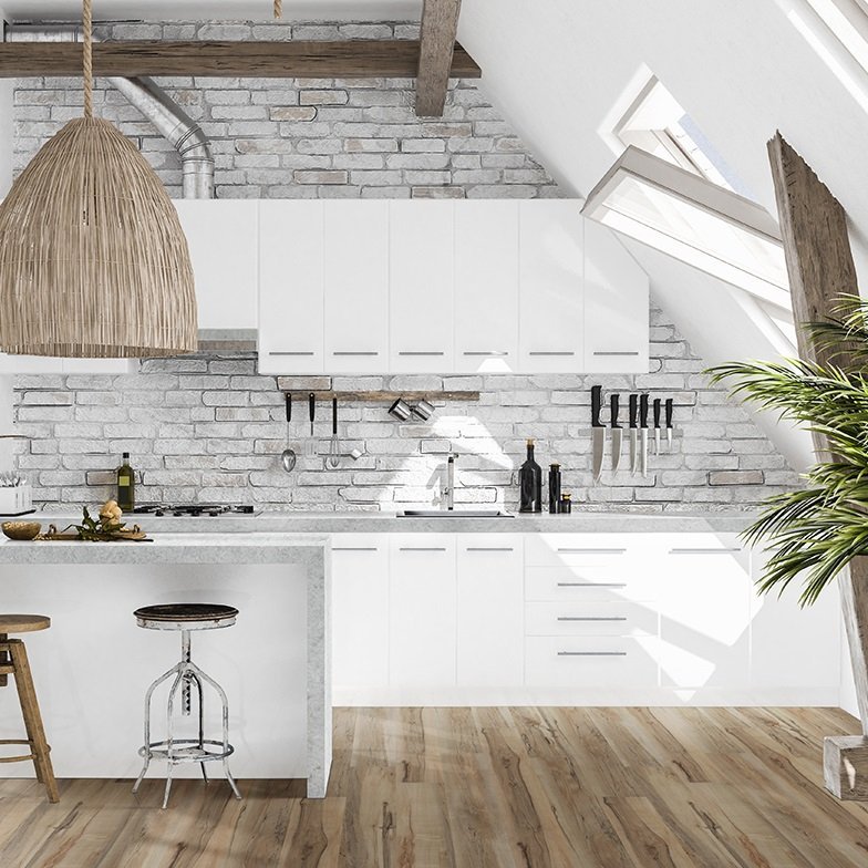 MSI SURFACES LUXURY VINYL, VINYL PLANK Akadia Luxury Vinyl Planks offer creamy neutral beige tones and delicate brown graining for understated elegance. This beautiful 7×48 wood-look vinyl flooring is 100% waterproof that’s backed by a lifetime residential warranty for added peace of mind. As part of the Cyrus Collection, it features an MSI exclusive CrystaLux™ protection layer, providing durability and longevity, protecting against everyday wear. Its innovative pre-attached backing ensures supreme comfort underfoot, while its easy-install locking system makes these vinyl planks DIY-friendly. This rigid core flooring features “no acclimation” technology that enables buy today, install today convenience. In the kitchen, living area, bathroom, basement and beyond, there’s no easier way to create luxurious, affordable, low maintenance floors than with LVP Flooring. Find coordinating vinyl plank flooring trim pieces below. Available trim items include end caps, stair noses, reducers, and T-molding.