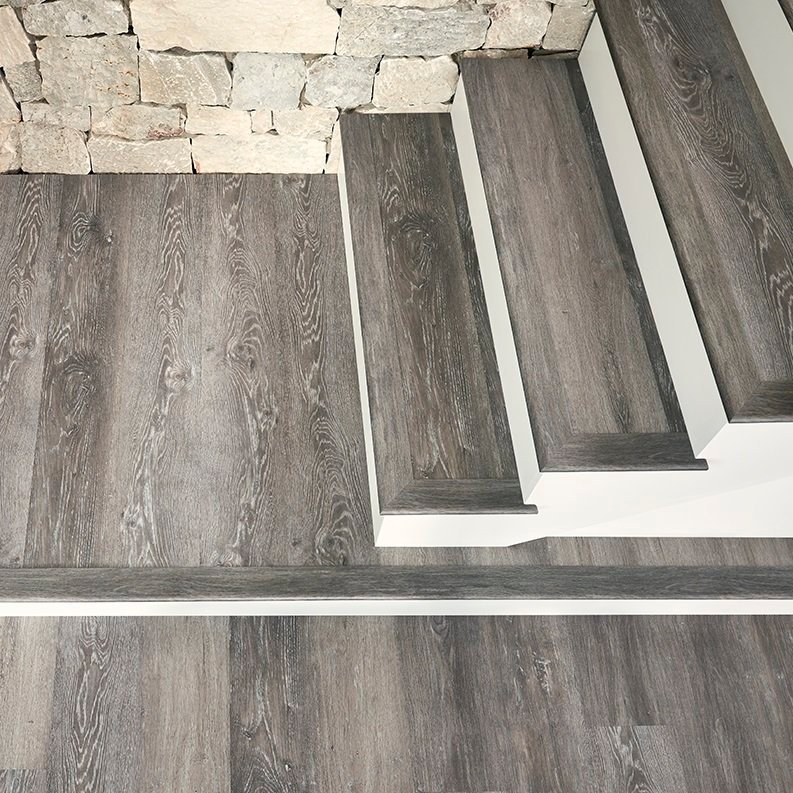 MSI SURFACES LUXURY VINYL, VINYL PLANK Add warmth and elegance to your interiors with Finely Luxury Vinyl Planks. Featuring a beautiful combination of gray and greige tones with lighter grains and knots in each plank, this 7×48 LVP flooring offers a genuine wood look. Use this flooring to help complement a variety of indoor spaces, including kitchens, bathrooms, entryways and other high-traffic areas. This durable and versatile flooring is 100% waterproof and backed by a lifetime residential warranty for added peace of mind. As part of the Cyrus Collection, it features an MSI exclusive CrystaLux™ protection layer, providing durability and longevity, protecting against everyday wear. For the professional and seasoned DIYer alike, this vinyl flooring features an innovative pre-attached backing with an easy to install locking system that ensures supreme underfoot comfort when in use. With “no acclimation” technology, this rigid core flooring allows for buy today, install today convenience. Find coordinating vinyl plank flooring trim pieces below. Available trim items include end caps, stair noses, reducers, and T-molding.
